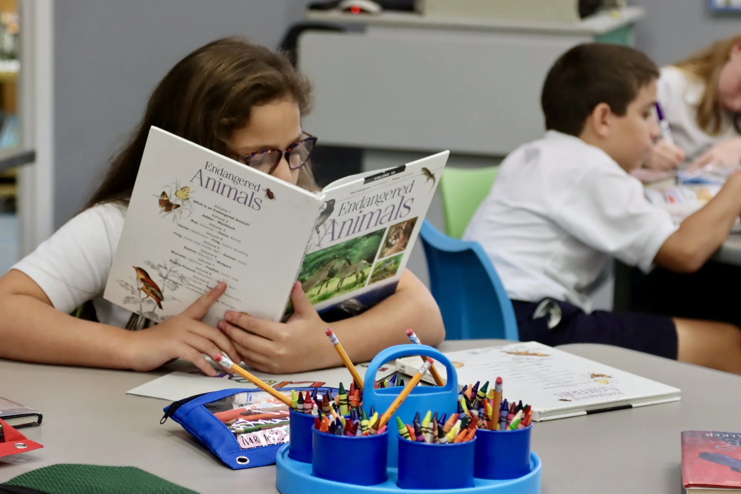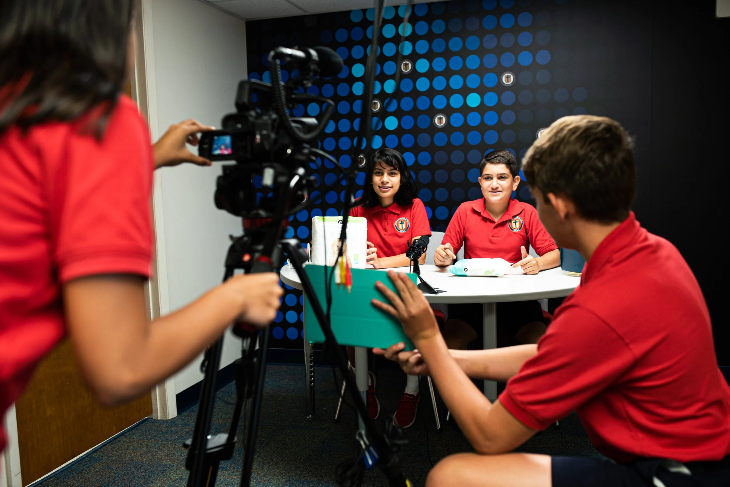 Our media center is a hub for creative learning and exploration. We offer more than 12,000 books, magazines, and audio-visual materials for our students and teachers to use and enjoy with the assistance of a full-time certified media specialist. All students benefit from weekly library classes and open library hours before and after school. We have access to all Accelerated Reader quizzes and support our students’ participation in AR reading and quizzing. The TEAL (technology enabled active learning) Center is a space outfitted with laptop computers, a smart screen, and printers where students can work individually or collaborate in groups with their instructor. The Media Center also has a dedicated set of 30 iPads for student use. Also in the media center, teams of eighth graders produce WSMM Channel 72 News; they broadcast their show daily to all classrooms from the WSMM Broadcasting studio. We also have iMacs available for small groups to use to explore their interests, showcase their discoveries, and create amazing project work.